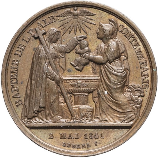 - Louis-Philippe Ier (1830-1848). Médaille, baptême de Louis-Philippe-Albert d’Orléans comte de Paris, par Borrel 1841, Paris.