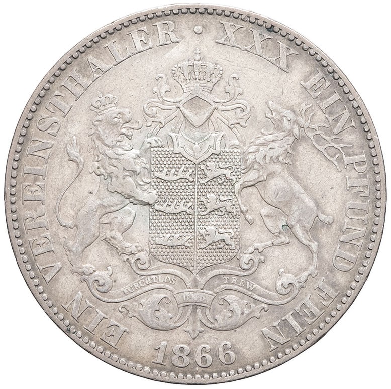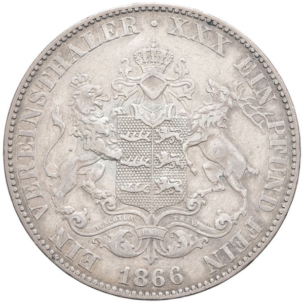 - GERMANY Wurtemberg, Charles (1864-1891). Thaler 1866, Stuttgart.