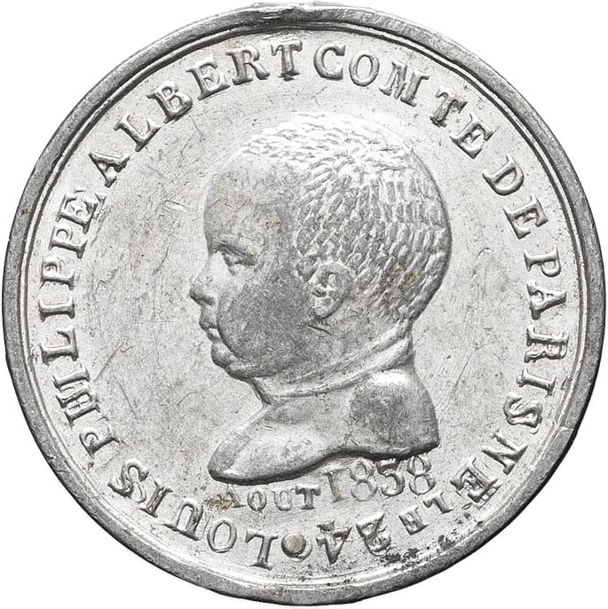 - Louis-Philippe Ier (1830-1848). Médaille, baptême de Louis-Philippe-Albert d’Orléans comte de Paris, par Montagny 1841, Paris.