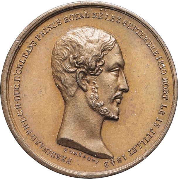 - Louis-Philippe Ier (1830-1848). Médaille, mort de Ferdinand-Philippe duc d’Orléans, par Montagny 1842, Paris.