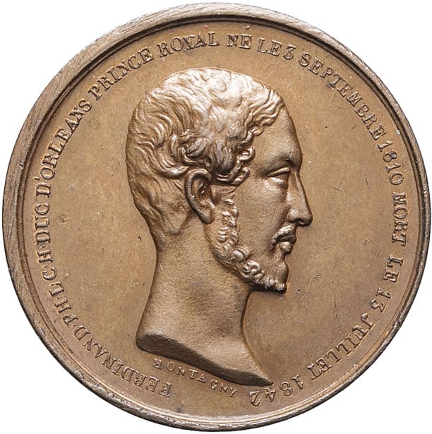 - Louis-Philippe Ier (1830-1848). Médaille, mort de Ferdinand-Philippe duc d’Orléans, par Montagny 1842, Paris.