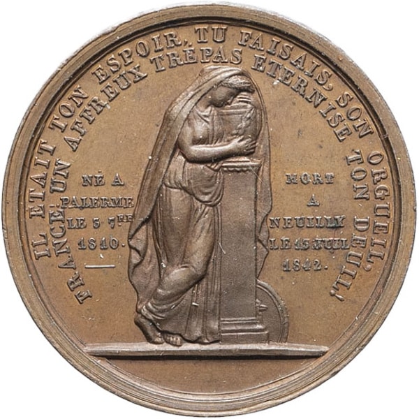 - Louis-Philippe Ier (1830-1848). Médaille, mort de Ferdinand-Philippe duc d’Orléans, par Borrel 1842, Paris.