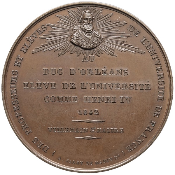 - Louis-Philippe Ier (1830-1848). Médaille, mort de Ferdinand-Philippe duc d’Orléans, hommage de l’Université, par Petit 1842, Paris.