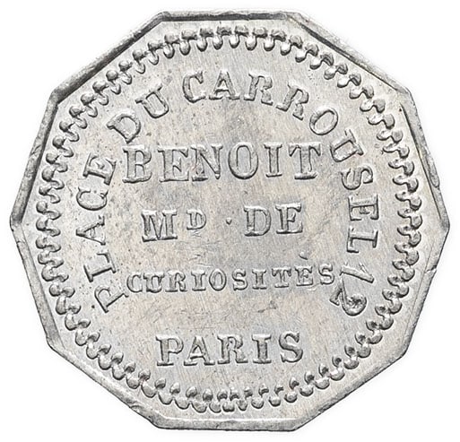 - Louis-Philippe Ier (1830-1848). Jeton publicitaire de Benoit marchand de curiosités, à l’effigie de Ferdinand-Philippe duc d’Orléans ND.