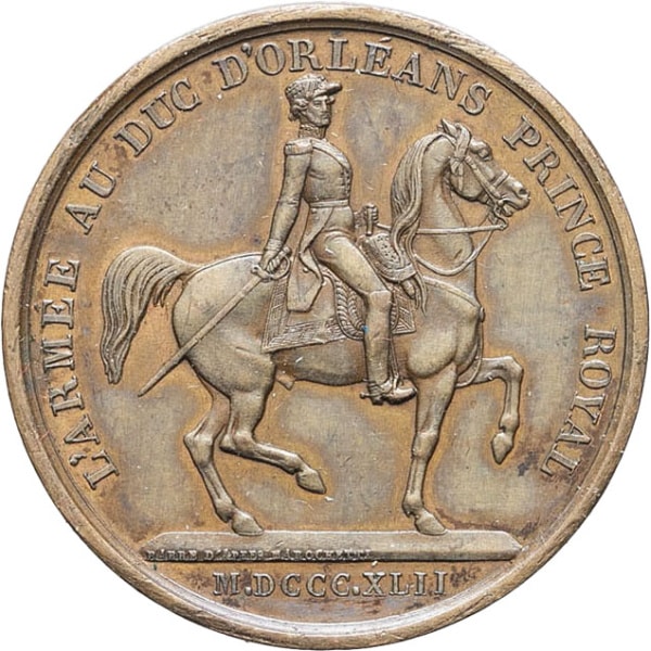 - Louis-Philippe Ier (1830-1848). Médaille, inauguration de la statue équestre de Ferdinand-Philippe duc d’Orléans, par Barre ND (1845), Paris.