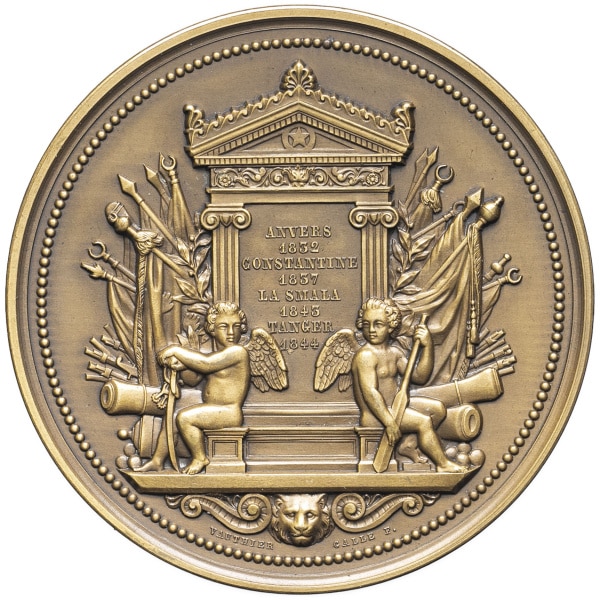 - Louis-Philippe Ier (1830-1848). Médaille, campagnes des fils de Louis-Philippe les ducs d’Aumale, de Joinville, d’Orléans, de Nemours et de Montpensier, par Vauthier Galle ND (refrappe XXe s.), Paris.