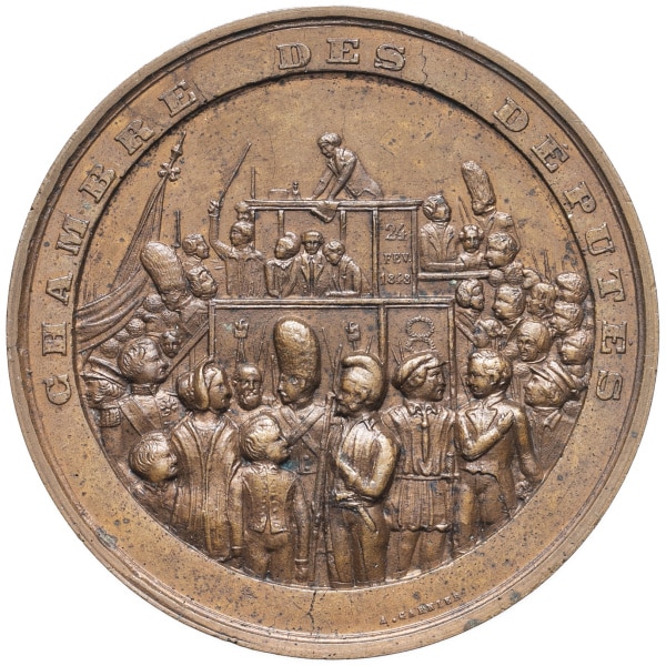- IIe République (1848-1852). Médaille, Lamartine à l’Hôtel de ville, par Garnier 1848, Paris.
