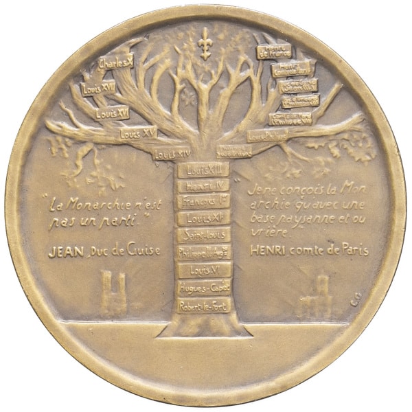 - IIIe République (1870-1940). Médaille, Jean III d’Orléans duc de Guise, Henri VI d’Orléans comte de Paris et le prince Henri de France, généalogie des Orléans, par C. Gueziec 1936, Paris (Janvier et Berchot).