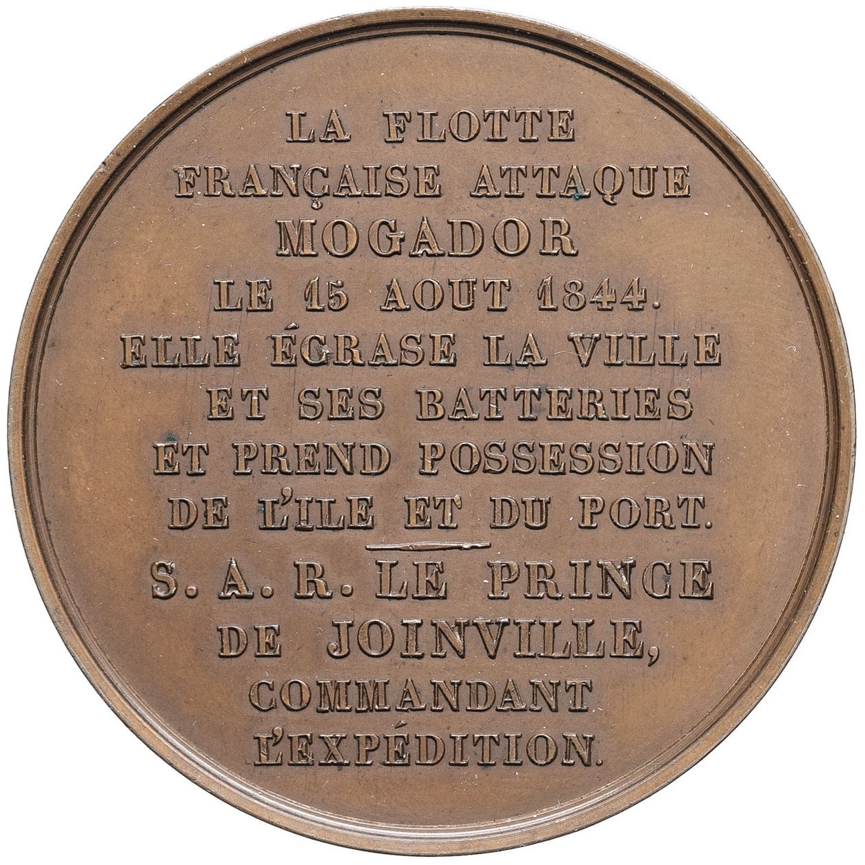 - MOROCCO Louis-Philippe Ier (1830-1848). Médaille, François-Ferdinand d’Orléans prince de Joinville, prise de Mogador, par Borrel 1844, Paris.