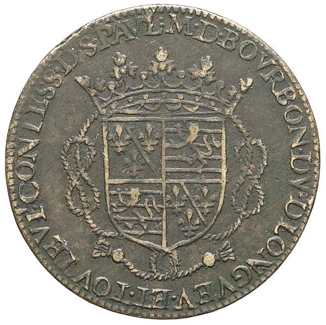 - SWITZERLAND Neuchâtel (comté de), Henri Ier (1573-1595). Jeton d’Henri Ier d’Orléans, prince de Neuchâtel, duc de Longueville et Marie de Bourbon, duchesse d’Estouteville, pour le rattachement de la seigneurie de Valangin au comté de Neuchâtel ND (1592).