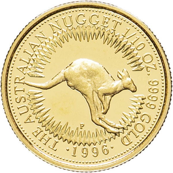 - AUSTRALIA Élisabeth II (1952-2022). 15 dollars ou 1/10 once nugget, Flan bruni (PROOF) 1996, P, Perth.