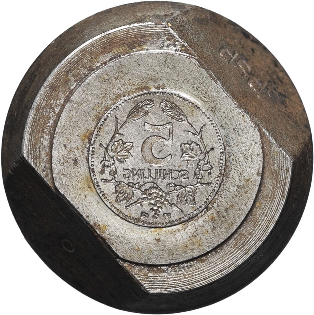 - AUSTRIA République d’Autriche (depuis 1945). Coin de revers pour une épreuve de 5 schilling 1953, Vienne.