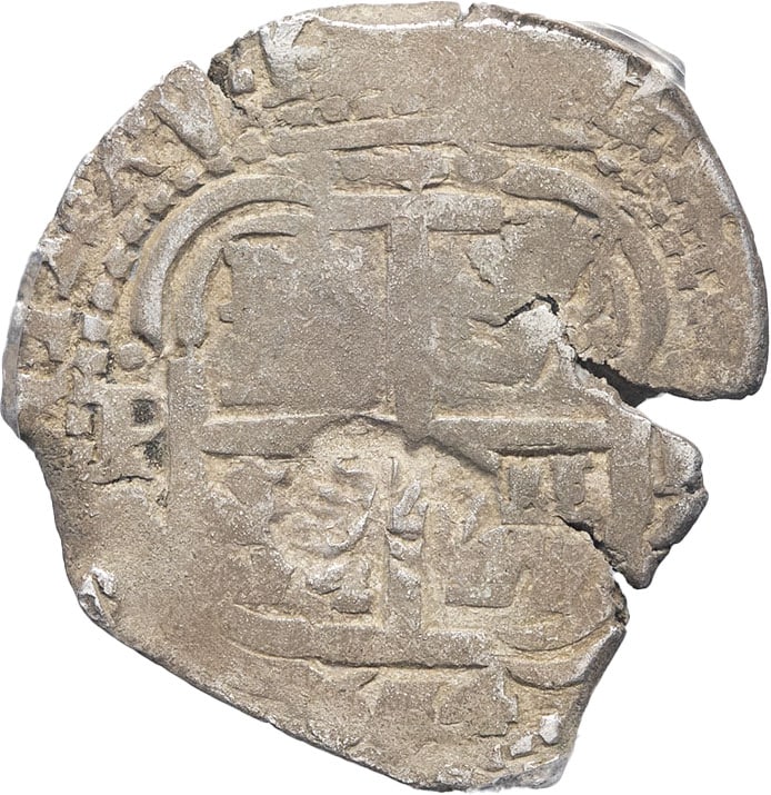 “Vers le milieu du 17e siècle circulait dans les Pays-Bas méridionaux un nombre considérable de pièces de 8 réaux Hispano-Américaines de forme irrégulière. Afin de donner cours légal à ces monnaies, il fut résolu de munir celles dont le poids était trouvé correct de la contremarque du bijou de la Toison d’or suspendu à un fusil entre deux briquets, fixant leur valeur d’échange à 48 patards” Delmonte, p. 82
