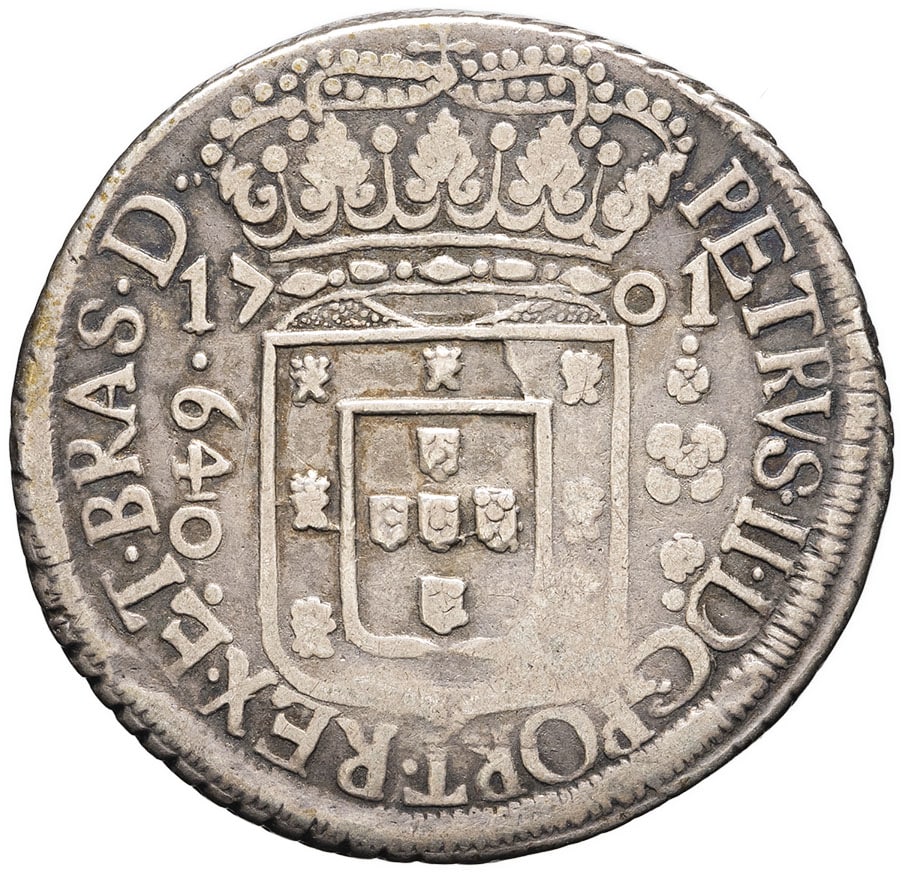 - BRAZIL Pierre II (1683-1706). 640 reis 1701, P, Pernambuco.