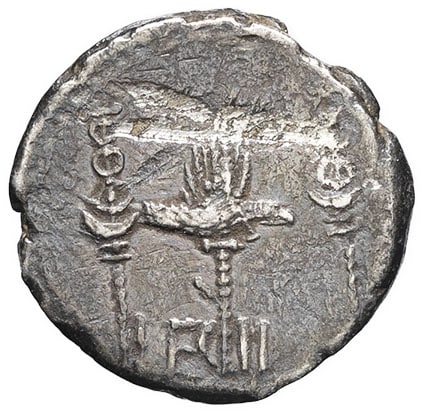 - ROMAN REPUBLIC Marc Antoine. Denier, pour la 2e légion ND (32-31 av. J.-C.), Grèce.
