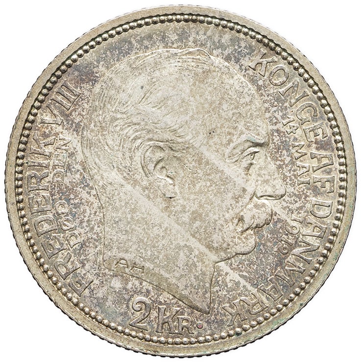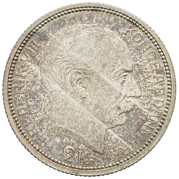 - DENMARK Christian X (1912-1947). 2 couronnes (2 kroner), mort de Frédéric VIII 1912, Copenhague.