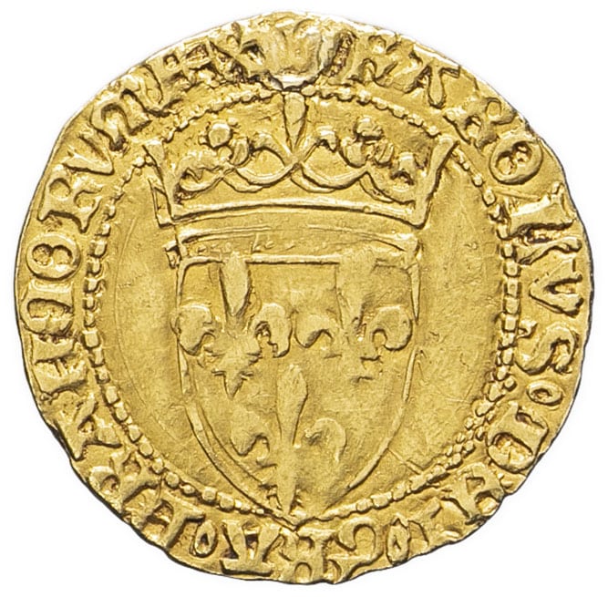 Av. (couronnelle) KAROLVS: DEI: GRA: FRANCORV: REX°. Écu de France couronné.