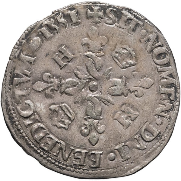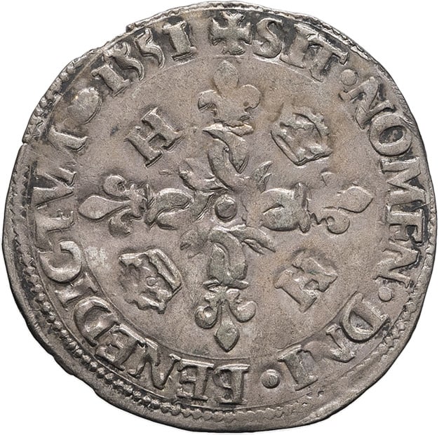 - FRANCE / ROYAL Henri II (1547-1559). Douzain aux croissants 1551, 9, Rennes.