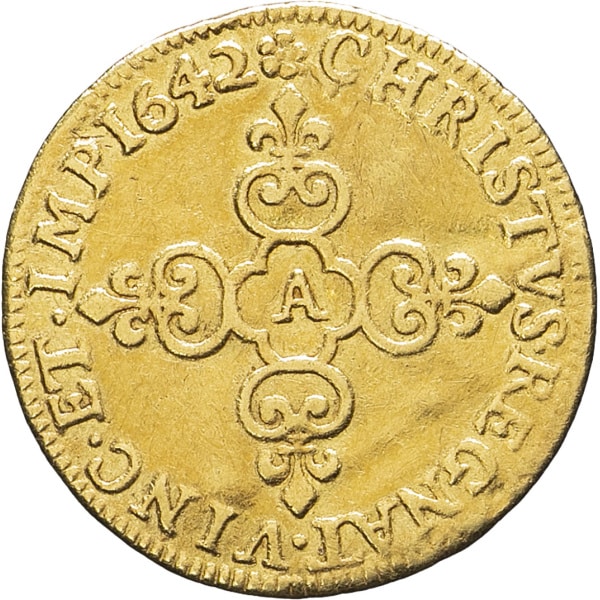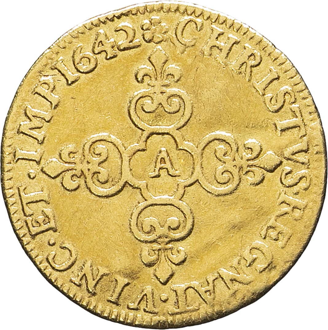 - FRANCE / ROYAL Louis XIII (1610-1643). Écu d’or au soleil, 1er type 1643, A, Paris.