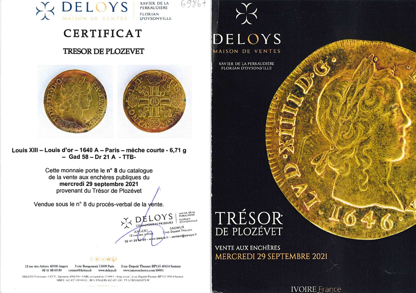 Provient du Trésor de Plozévet (29) découvert en 2019, N° 8, avec son certificat.