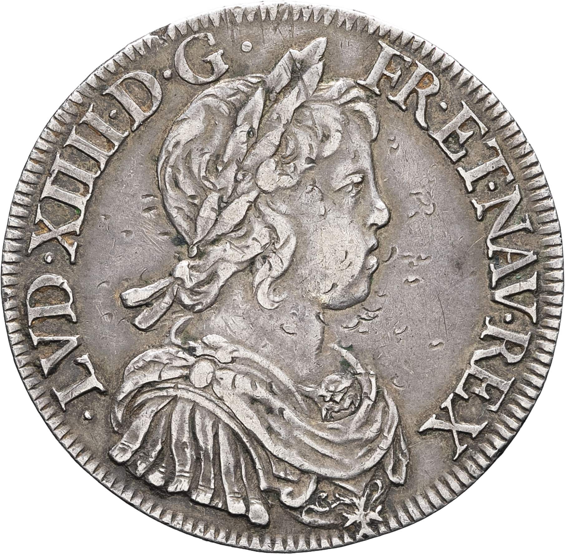 - FRANCE / ROYAL Louis XIV (1643-1715). Écu à la mèche courte 1644, A, Paris (point).