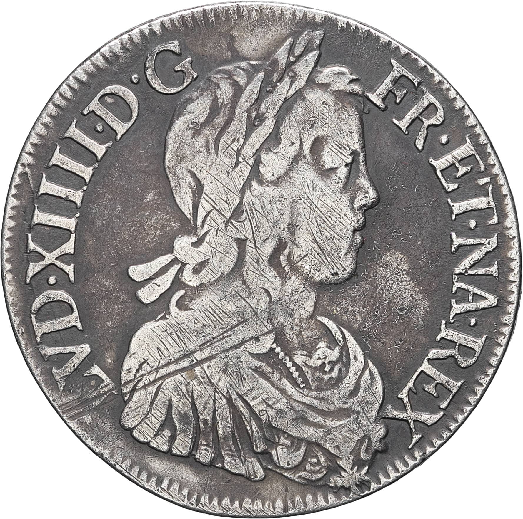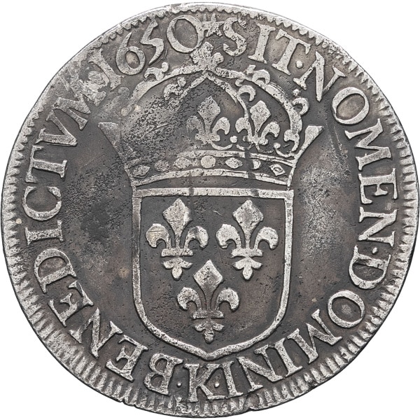 - FRANCE / ROYAL Louis XIV (1643-1715). Écu à la mèche longue 1650, K, Bordeaux.
