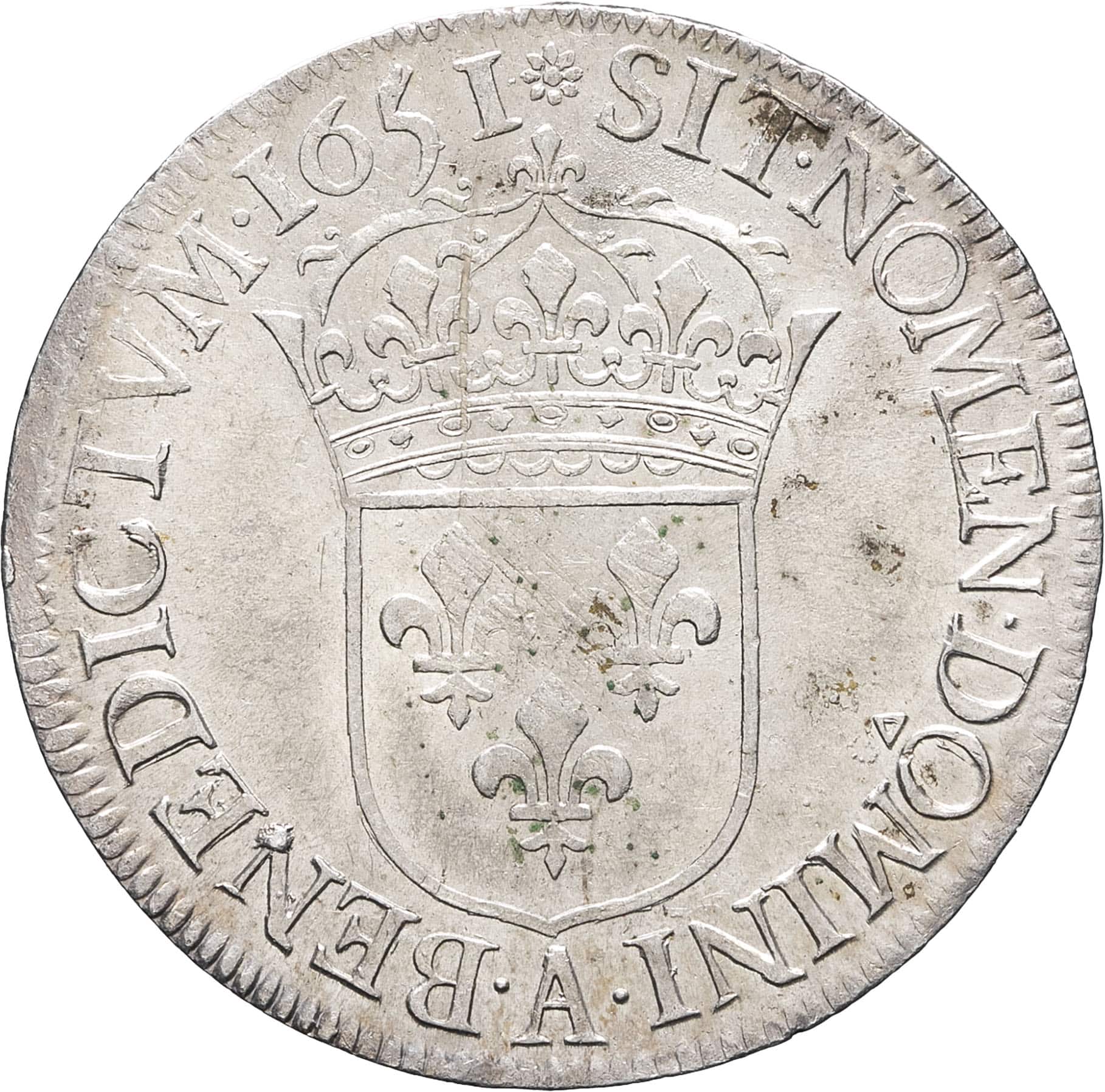 - FRANCE / ROYAL Louis XIV (1643-1715). Écu à la mèche longue 1651, A, Paris.