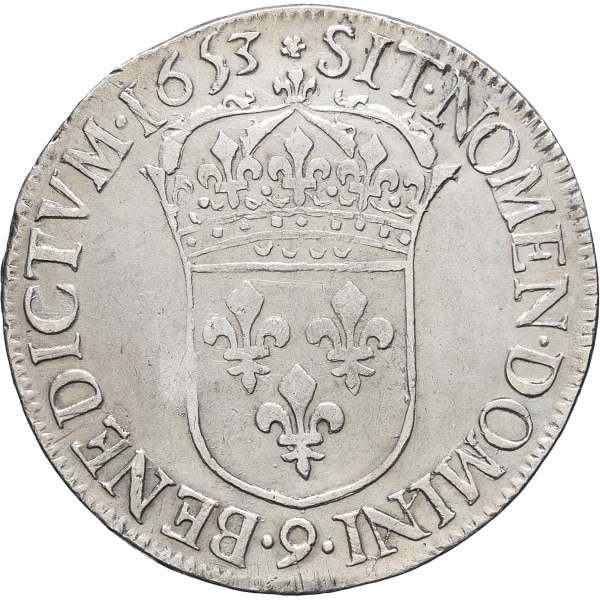 - FRANCE / ROYAL Louis XIV (1643-1715). Écu à la mèche longue 1653, 9, Rennes.