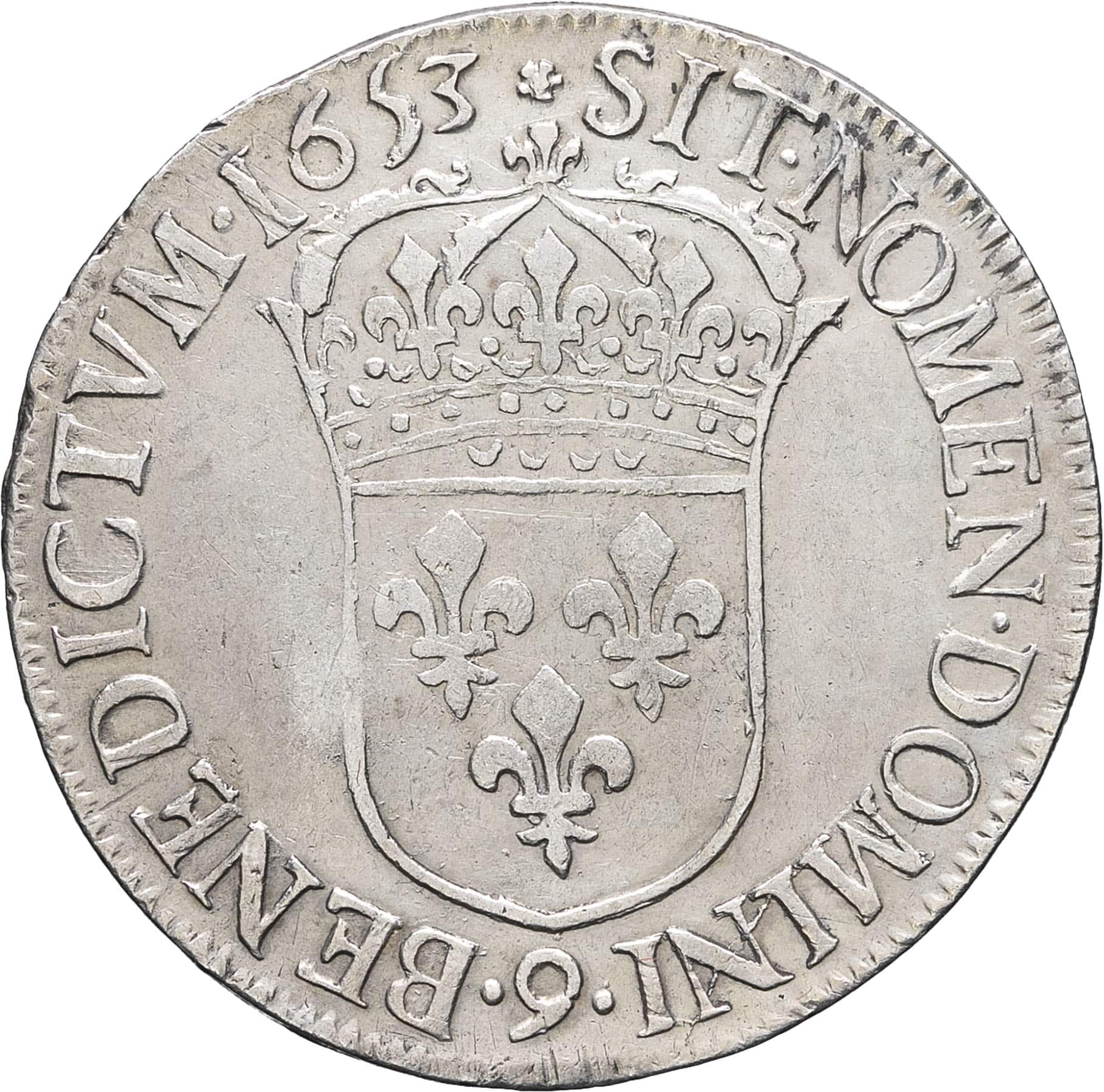 Rv. (différent) SIT. NOMEN. DOMINI. BENEDICTVM. (date). Écu de France couronné, au-dessous (atelier).