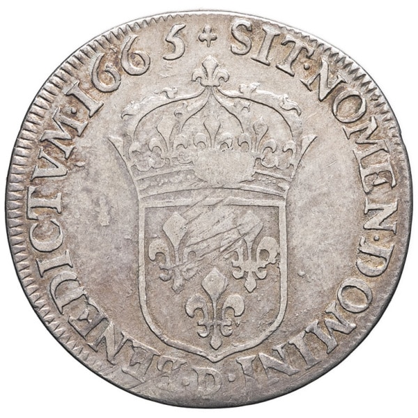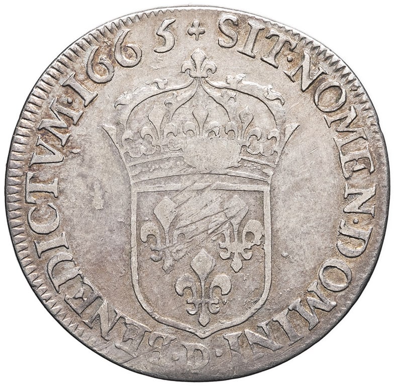- FRANCE / ROYAL Louis XIV (1643-1715). Demi-écu au buste juvénile, 2e poinçon d’effigie 1665, D, Lyon.