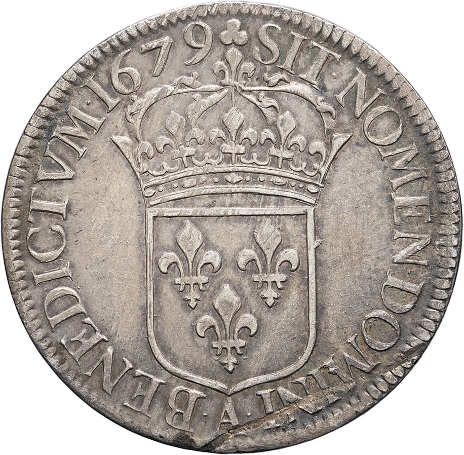 - FRANCE / ROYAL Louis XIV (1643-1715). Écu à la cravate, 2e émission par F. Warin 1679, A, Paris.