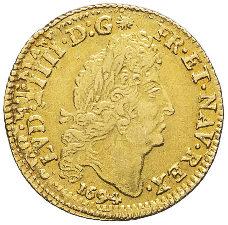 - FRANCE / ROYAL Louis XIV (1643-1715). Louis d’or aux quatre L 1694, E, Tours.