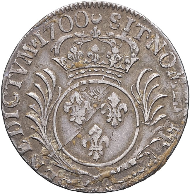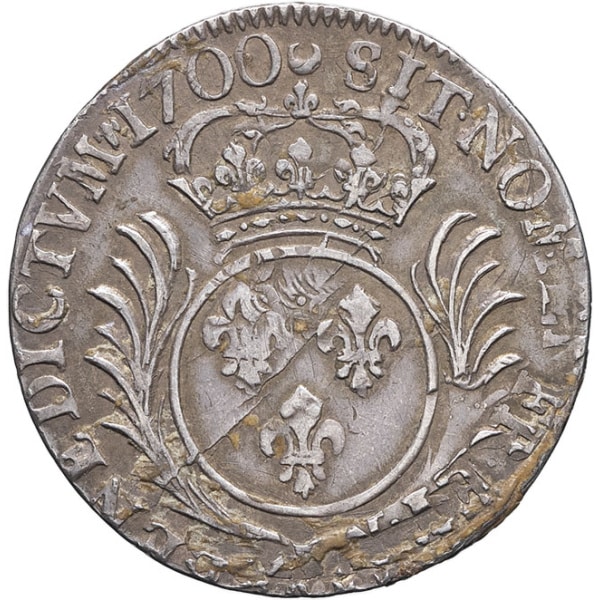- FRANCE / ROYAL Louis XIV (1643-1715). Quart d’écu aux palmes 1700, A, Paris.