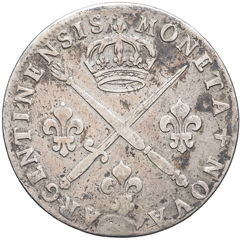 Av. MONETA (différent) NOVA (différent) ARGENTINENSIS. Main de justice et glaive, posés en sautoir, sous une couronne, accostés de trois lis posés 2 et 1.