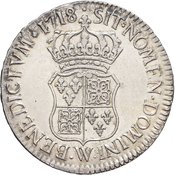 - FRANCE / ROYAL Louis XV (1715-1774). Écu de France-Navarre 1718, W, Lille.