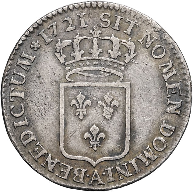 - FRANCE / ROYAL Louis XV (1715-1774). Tiers d’écu de France 1721, A, Paris.