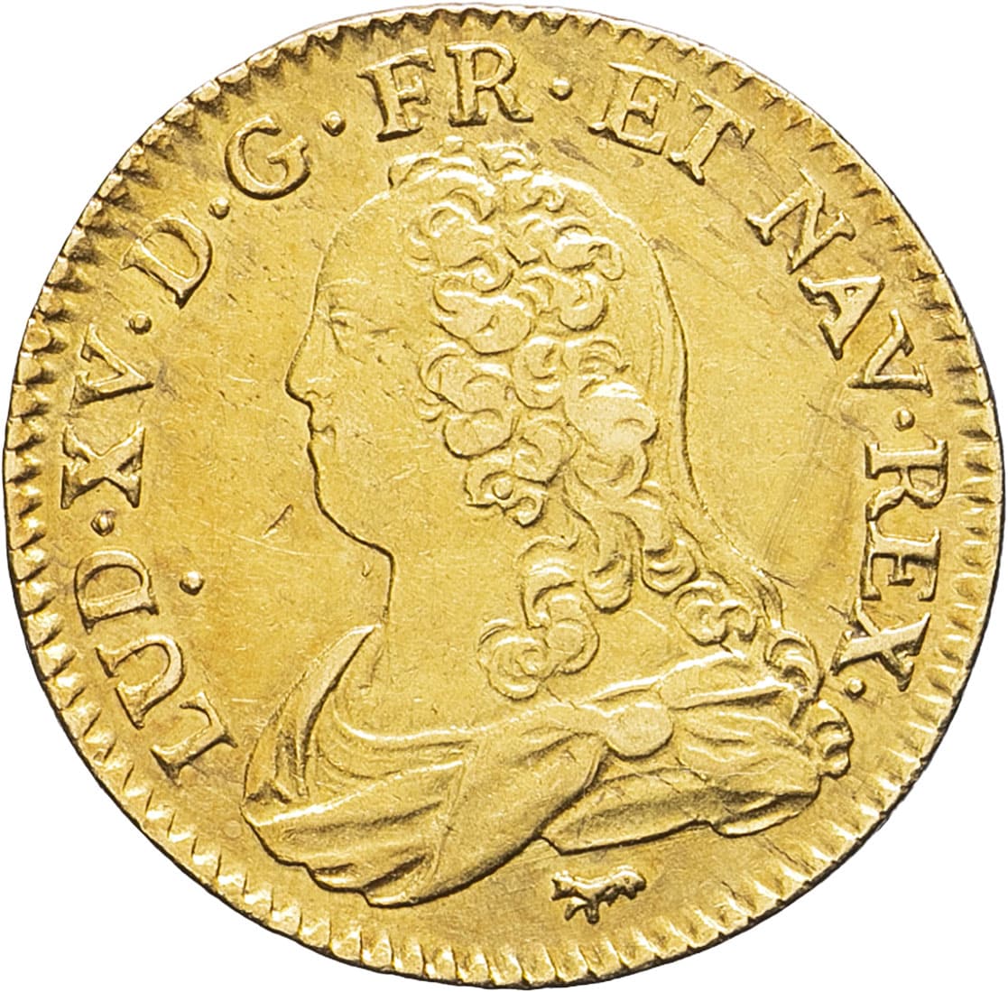 Av. LUD. XV. D. G. FR. ET. NAV. REX. Buste à gauche du Roi, drapé, la tête nue ; au-dessous (différent).