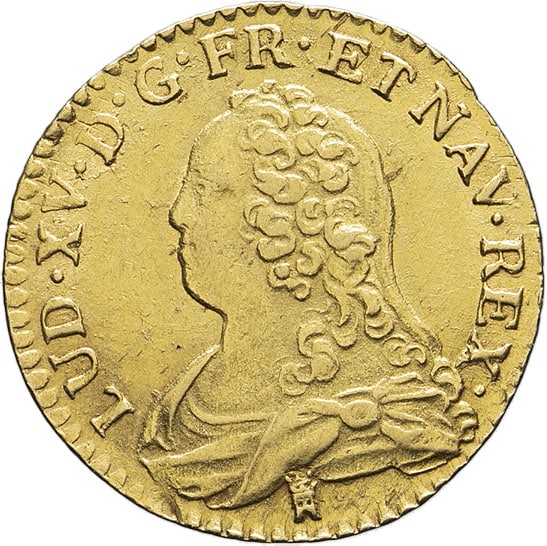 Av. LUD. XV. D. G. FR. ET. NAV. REX. Buste à gauche du Roi, drapé, la tête nue ; au-dessous (différent).