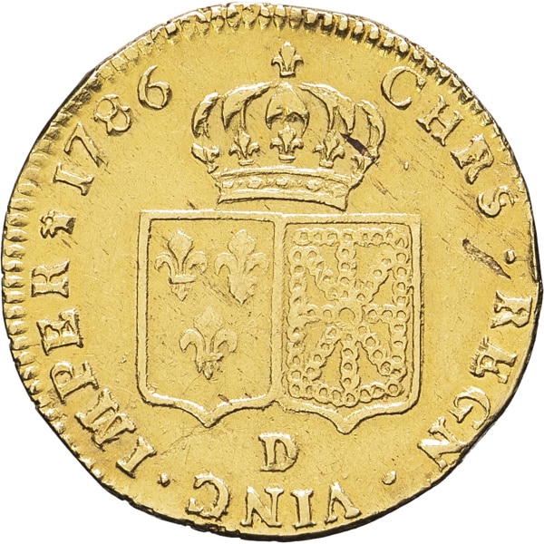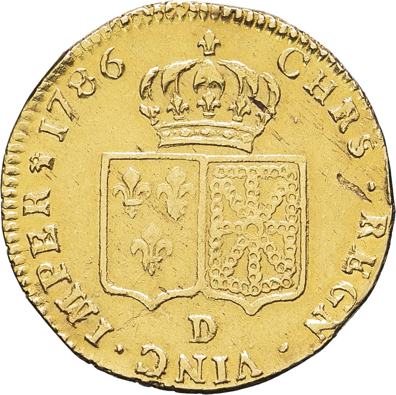 - FRANCE / ROYAL Louis XVI (1774-1792). Double louis d’or à la tête nue 1786, 1er semestre, D, Lyon.