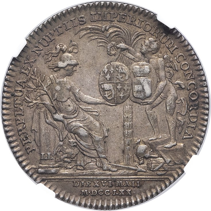 - FRANCE / ROYAL Louis XVI (1774-1792). Jeton, mariage du Dauphin Louis (XVI) avec la Dauphine Marie-Antoinette, par J.-P. Droz et L. Léonard 1770 (postérieur), Paris.