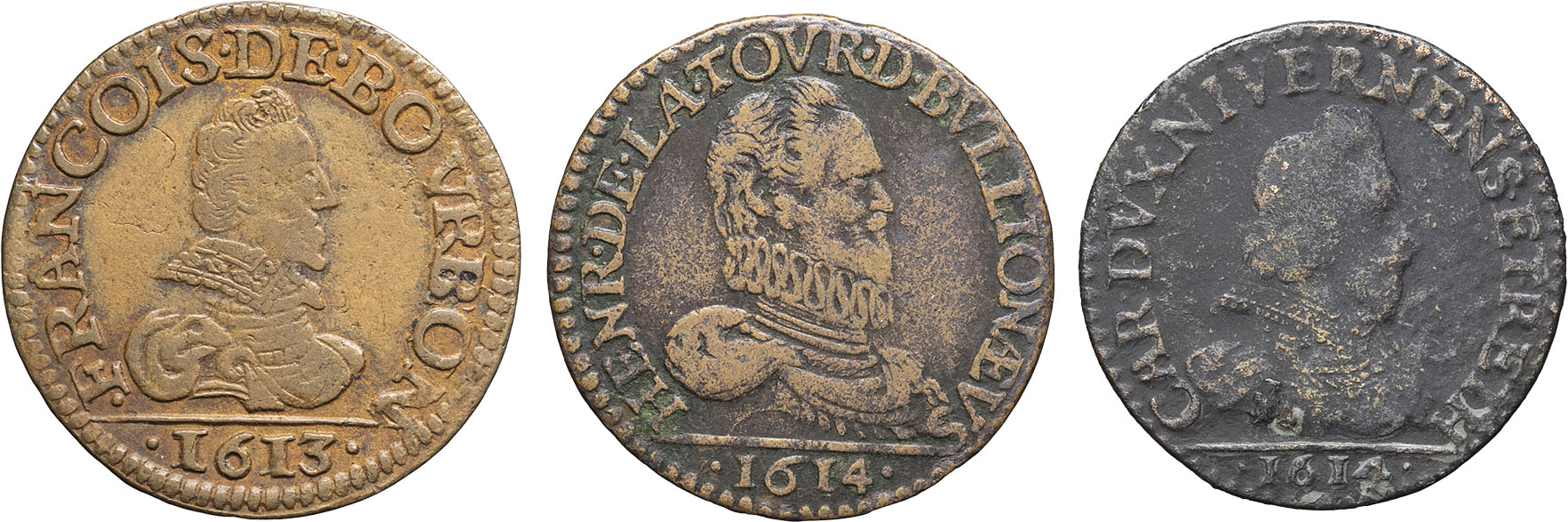 - FRANCE / FEUDAL Sedan, Henri de La Tour d’Auvergne (1594-1623). Lot de 3 liards 1613-1614.