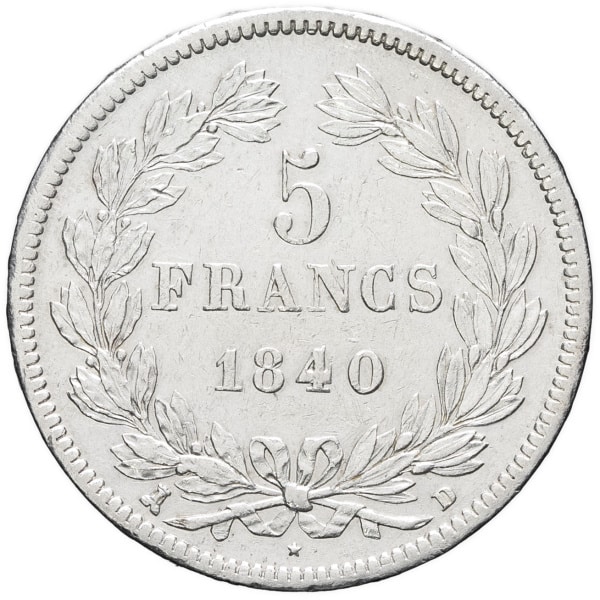 - Louis-Philippe Ier (1830-1848). 5 francs, IIe type Domard 1840, D, Lyon.