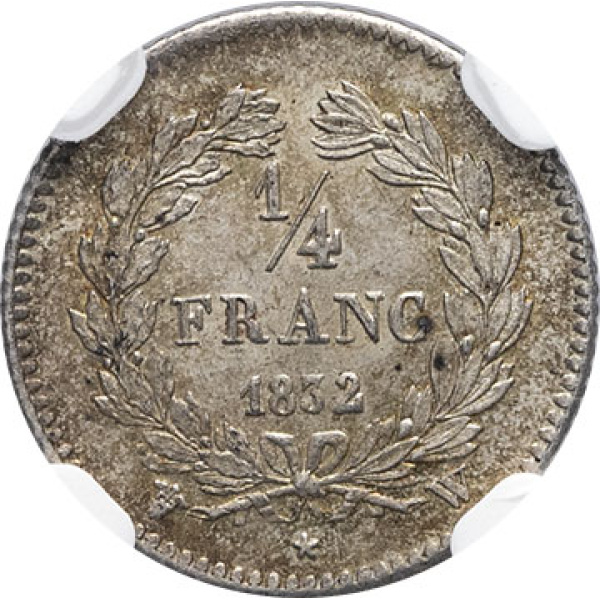 - Louis-Philippe Ier (1830-1848). 1/4 franc 1832, W, Lille.