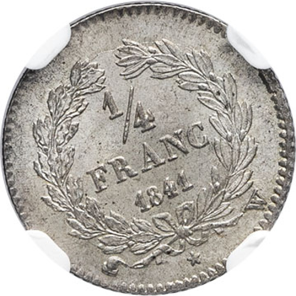 - Louis-Philippe Ier (1830-1848). 1/4 franc 1841, W, Lille.