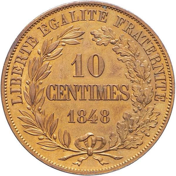 - IIe République (1848-1852). Essai de 10 centimes, concours de Domard 1848, Paris.