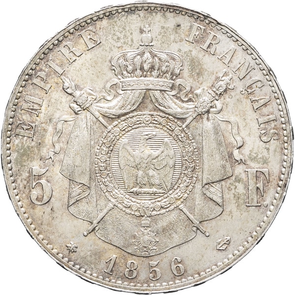 - Second Empire / Napoléon III (1852-1870). 5 francs tête nue 1856, BB, Strasbourg.