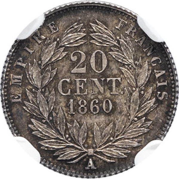 - Second Empire / Napoléon III (1852-1870). 20 centimes tête nue 1860, A, Paris.