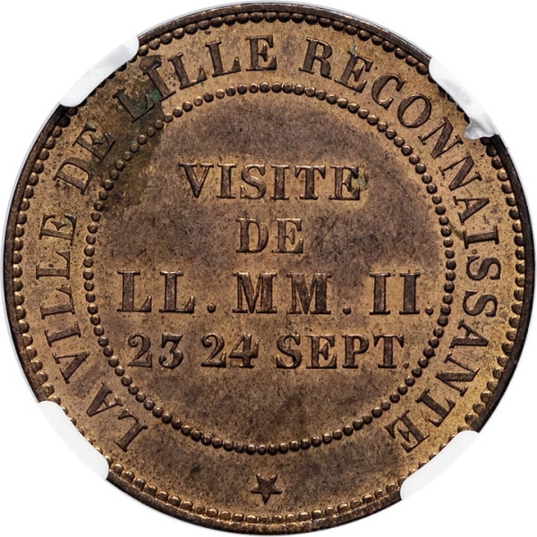 Second Empire / Napoléon III (1852-1870). Module de 10 centimes, visite de l’empereur à Lille 1853.