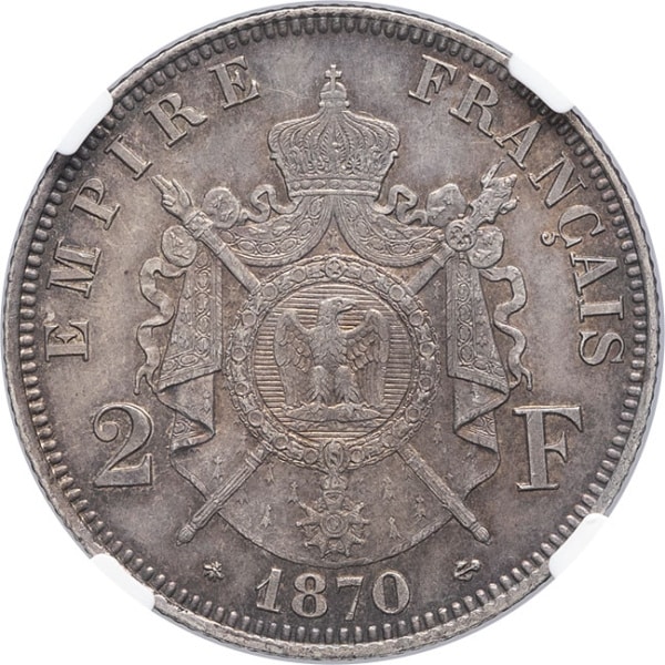 - Second Empire / Napoléon III (1852-1870). 2 francs tête laurée 1870, A, Paris.