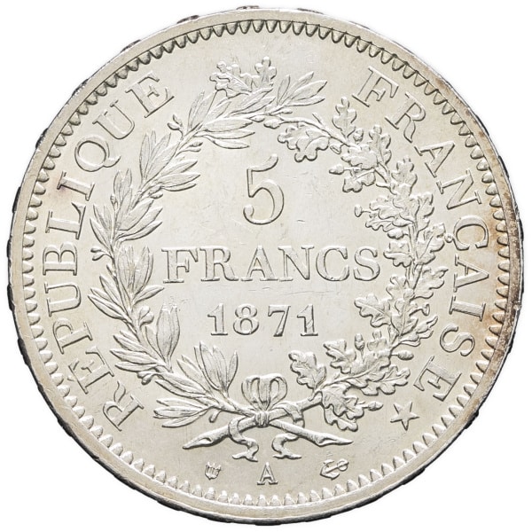 - Gouvernement de Défense Nationale (1870-1871). 5 francs Hercule, Camélinat 1871, A, Paris.